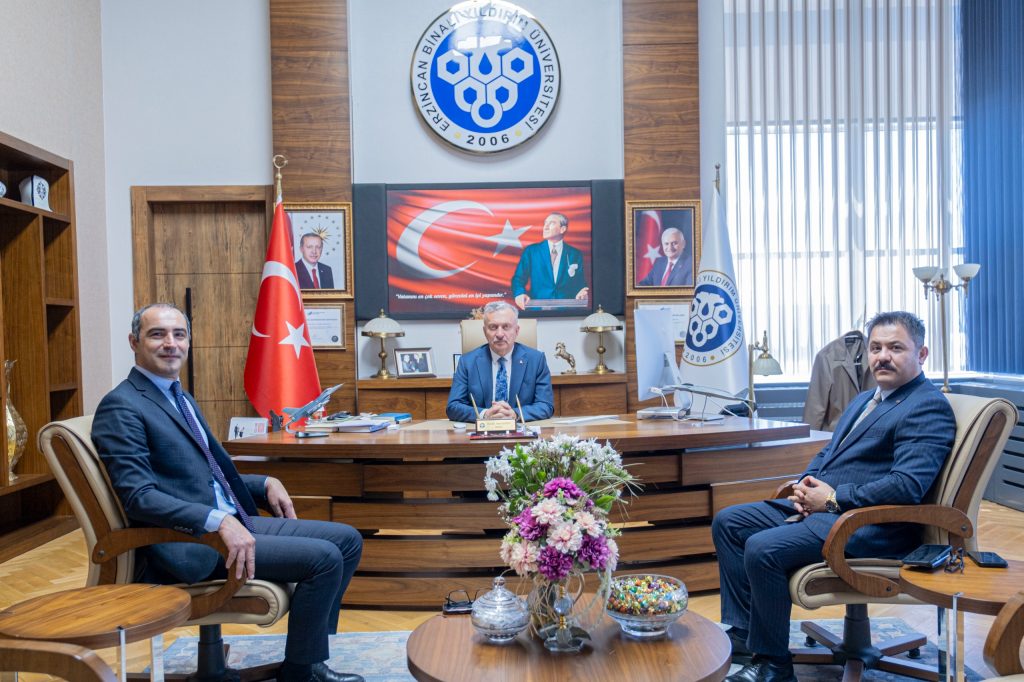 Erzincan Binali Yıldırım Üniversitesi Rektörü Prof. Dr. Akın Levent, VakıfBank Bölge Müdürü Alptürk Ceylan ve Şube Müdürü Egemen Yılmaz’ı makamında kabul etti. Rektörlük makamında gerçekleşen ziyarette misafirleriyle bir süre sohbet […]