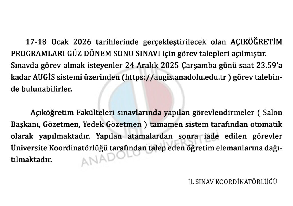 AÖF Sınav Duyurusu