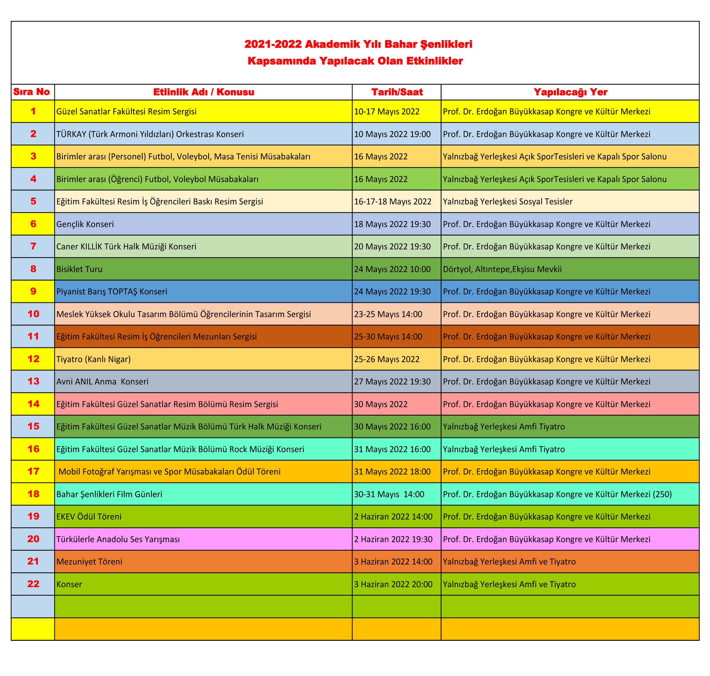 2021-2022 Akademik Yılı Bahar Şenlikleri Kapsamında Yapılacak Olan Etkinlikler