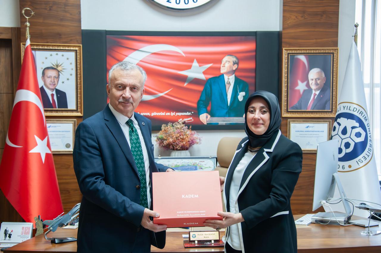 Erzincan Binali Yıldırım Üniversitesi Rektörü Prof. Dr. Akın Levent, KADEM Erzincan İl Başkanı Yıldız Ertunç’u makamında kabul etti.