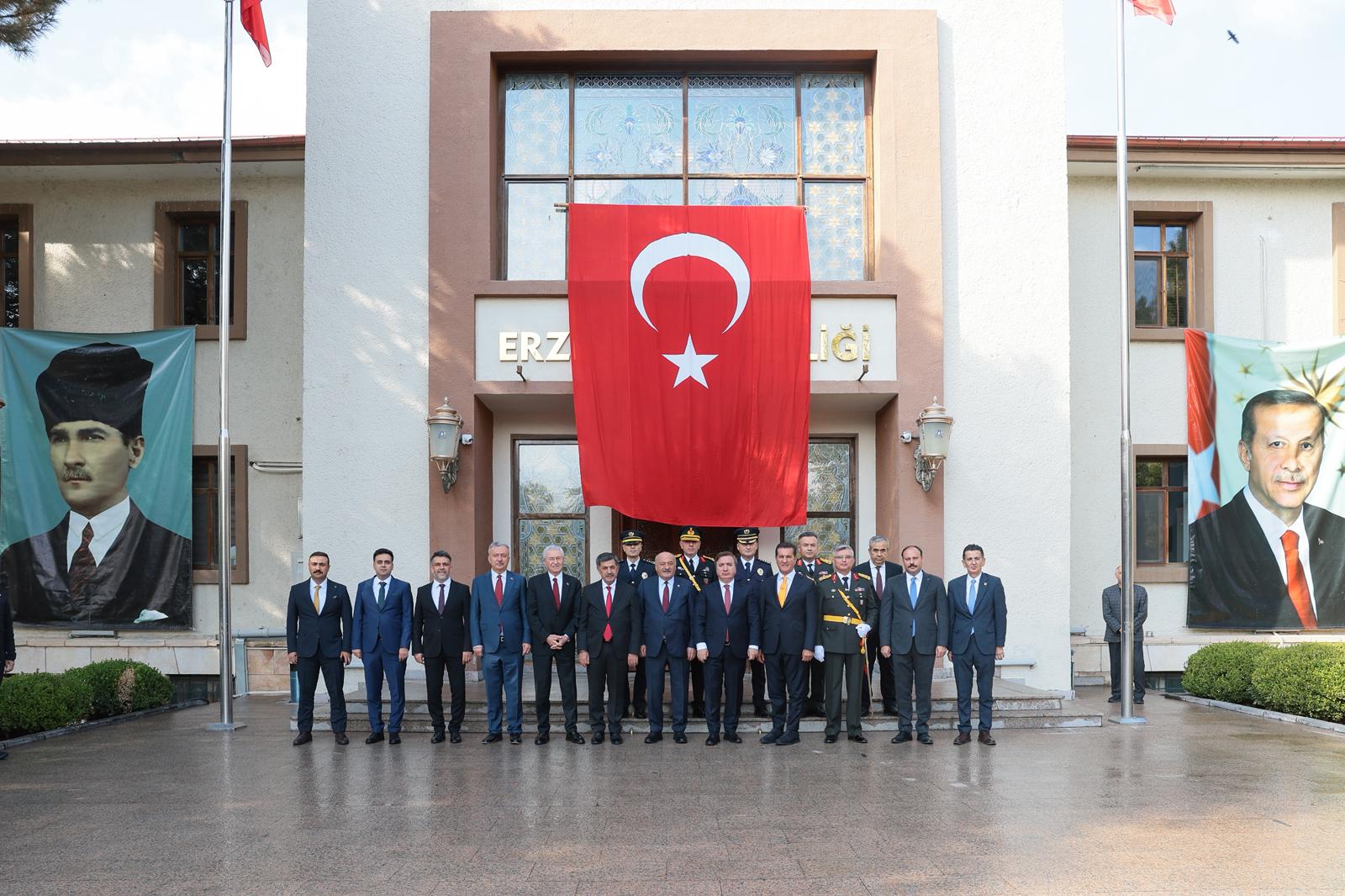 Cumhuriyet Bayramı programı kapsamında gerçekleşen tören Erzincan Valiliği önünde başlayıp Merkez Spor Salonunda devam etti. Düzenlenen programa; Erzincan Valisi Doç. Dr. Hamza Aydoğdu, ilimiz Milletvekilleri Süleyman Karaman ve Mustafa Sarıgül, 3. Ordu Kurmay Başkanı ve Garnizon Komutanı Tümg. Murat Ataç, Erzincan Belediye Başkanı Bekir Aksun, Erzincan Cumhuriyet Başsavcısı Mustafa Değerli, Adli Yargı Adalet Komisyonu Başkanı Yavuz Özcan, Erzincan Binali Yıldırım Üniversitesi Rektörü Prof. Dr. Akın Levent, ilimiz protokolü, askeri, sivil erkan, siyasi parti, sivil toplum kuruluşu, siyasi parti temsilcileri, gaziler, öğrenciler ve vatandaşlar katıldı.