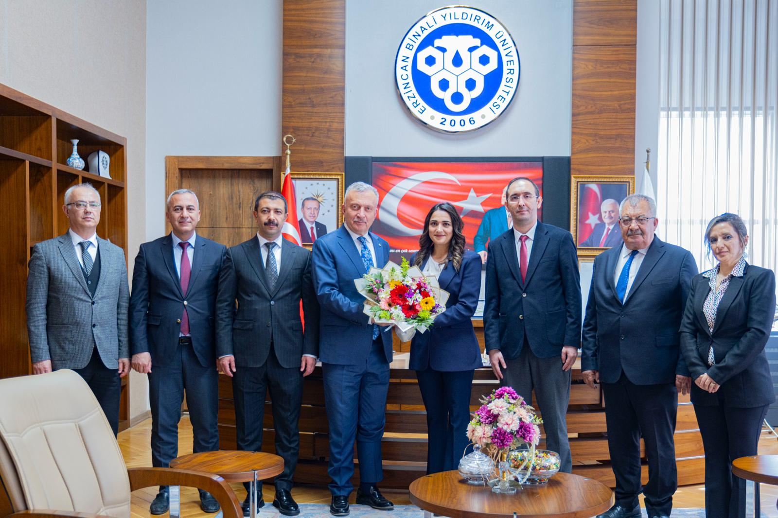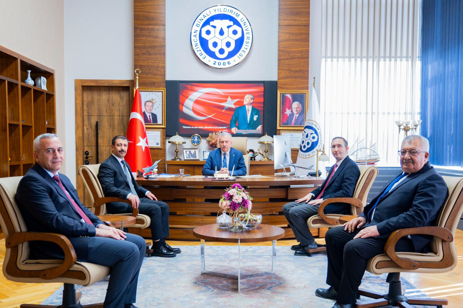 İl Kültür ve Turizm Müdürü Oğuzhan Kılıç, Erzincan Binali Yıldırım Üniversitesi Turizm ve Otelcilik Meslek Yüksekokulu Müdürü Doç. Dr. Gürkan Alagöz ve beraberindeki heyet, 15-22 Nisan Turizm Haftası münasebetiyle Üniversite Rektörümüz Prof. Dr. Akın Levent’i makamında ziyaret etti.